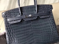 Hermès(爱马仕)Birkin 铂金包 亮面鳄鱼 ck75 牛仔蓝 银扣 35cm