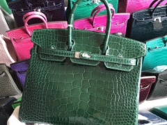 Hermès(爱马仕)Birkin 铂金包 亮面鳄鱼 ck67祖母绿 银扣 25cm 现货