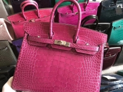 Hermès(爱马仕)Birkin 铂金包 亮面鳄鱼 J5 天方夜谭粉紫 金扣 银扣 25cm 现货