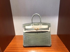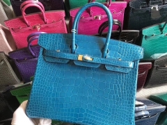 Hermès(爱马仕)Birkin 铂金包 亮面鳄鱼 7w 伊兹密尔蓝 金扣 银扣 25cm 现货