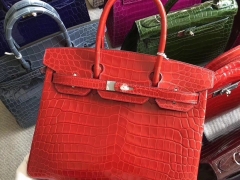 Hermès(爱马仕)Birkin 铂金包 亮面鳄鱼 ck95 法拉利红 Braise 银扣 顶级手缝 30cm 现货