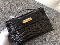 Hermès(爱马仕)Minikelly 亮面鳄鱼 ck89 黑色 Noir 金扣 超美拱珠皮 手拿包 晚宴包 现货