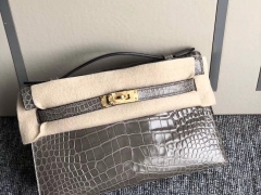 Hermès(爱马仕)Mini kelly pochette 22cm 亮面鳄鱼 ck81 斑鸠灰 金扣 手拿包 晚宴包 现货