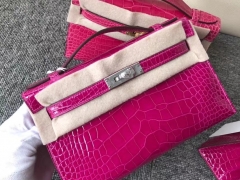 Hermès(爱马仕)Mini kelly pochette 22cm Alligator shiny 亮面鳄鱼 J5 天方夜谭粉紫 银扣