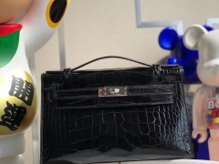 Hermès(爱马仕)Mini kelly pochette 22cm Alligator shiny 亮面鳄鱼 ck89 黑色 Noir 银扣 顶级手缝 现货