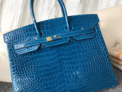 Hermès(爱马仕)Birkin 35cm Porosus shiny 亮面鳄鱼 7w 伊兹密尔蓝 Blue izmir 金扣 定制