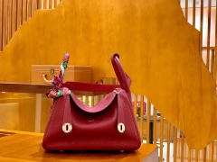 品牌:Hermès(爱马仕);类别:Lindy 琳迪包;颜色:酒红色;材质:鳄鱼皮拼牛皮 togo;等级:顶级;附件:全套包装礼盒;尺寸:26cm;功能:手提单肩包
