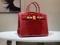 Hermès(爱马仕)Brikin铂金包 鳄鱼皮 波尔多酒红 30cm