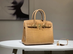 Hermès(爱马仕)Brikin铂金包 鳄鱼皮 杏色 30cm