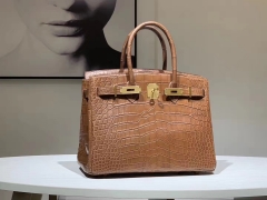 Hermès(爱马仕)Brikin铂金包 鳄鱼皮 焦糖色 30cm 现货
