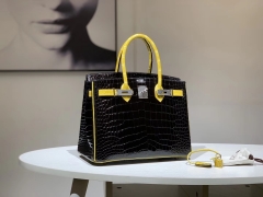 Hermès(爱马仕)Brikin铂金包 鳄鱼皮 柠檬黄配黑色 30cm