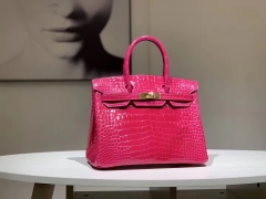 Hermès(爱马仕)Brikin铂金包 鳄鱼皮 玫红色 30cm 现货