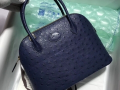 Hermès(爱马仕)Bolide 保龄球包 27cm Ostrich kk 鸵鸟 宝石蓝 blue saphir 顶级手缝