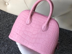 Hermès(爱马仕)Mini bolide alligator matt 雾面鳄鱼 5p 樱花粉 银扣 顶级手缝 现货
