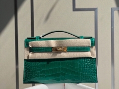 Hermès(爱马仕)Mini Kelly pochette 22cm Alligator shiny 亮面鳄鱼 6Q 翡翠绿 金扣 银扣 顶级手缝 现货
