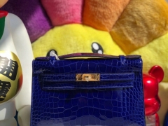 品牌:Hermès(爱马仕);类别:Mini Kelly迷你凯莉包;颜色: 皇家蓝;材质:亮面鳄鱼;等级:顶级;附件:全套包装礼盒;尺寸:19cm;功能:手提单肩包