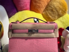 Hermès(爱马仕)Mini kelly pochette 22cm Alligator shiny 亮面鳄鱼 樱花粉 银扣 晚宴包 顶级手缝 现货