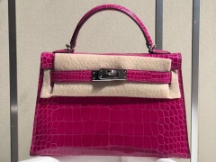 Hermès(爱马仕)Mini kelly ll alligator shiny 亮面鳄鱼 J5 天方夜谭粉紫 银扣 顶级手缝 小可爱 现货
