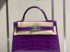 Hermès(爱马仕)Mini kelly ll alligator shiny 亮面鳄鱼 5L 极度紫 银扣 顶级手缝 小可爱 现货