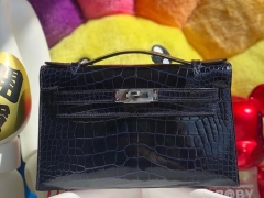 Hermès(爱马仕)Mini kelly pochette 22cm Alligator shiny 亮面鳄鱼 7k 宝石蓝 银扣 顶级手缝 晚宴包 现货
