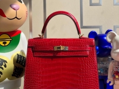 Hermès(爱马仕)Kelly 25cm Alligator shiny 亮面鳄鱼 ck95 法拉利红 Braise 金扣 顶级手缝 现货