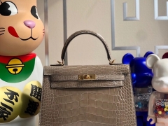 Hermès(爱马仕)Kelly 25cm Alligator shiny 亮面鳄鱼 ck81 斑鸠灰 金扣 顶级手缝 现货