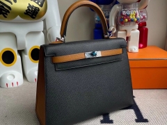 Hermès(爱马仕)kelly 25cm Epsom 原厂掌纹皮 ck89 黑色拼 1H 太妃色 银扣 马蹄印 顶级手缝 现货
