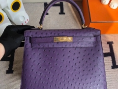 Hermès(爱马仕)Kelly 25cm Ostrich kk鸵鸟 葡萄紫 金扣 顶级手缝 现货