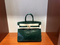 Hermès(爱马仕)Birkin 25cm Alligator shiny 亮面鳄鱼 ck67 祖母绿 Vert fonce 金扣 顶级手缝 现货