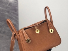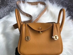 品牌:Hermès(爱马仕);类别:Mini Lindy 迷你琳迪包;颜色:金棕色;材质:精选原版皮;等级:顶级;附件:全套包装礼盒;尺寸:20cm;功能:单肩背包