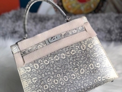 Hermès(爱马仕)Kelly 25cm Lizard 进口亮面蜥蜴 01原色 小喜马拉雅色 银扣 顶级手缝 现货