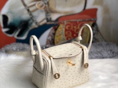 Hermès(爱马仕)Mini lindy Ostrich kk鸵鸟 3c 羊毛白 金扣 顶级手缝 定制