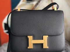Hermès(爱马仕)Constance 24cm Epsom 原厂掌纹皮 ck89 黑色 Noir 金扣 最最最新