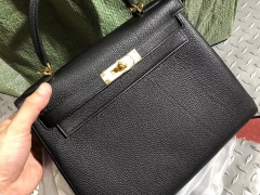 Hermès(爱马仕)Kelly 28cm 原厂小牛皮 togo ck89 黑色 金扣 顶级手缝