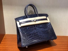 Hermès(爱马仕)Birkin 25cm shiny nilo crocodile 亮面两点汨罗鳄 Ck73宝石蓝 蜡线全缝 银扣