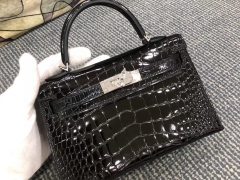 Hermès(爱马仕)Mini kelly ll alligator shiny 亮面鳄鱼 ck89 黑色 Noir 银扣 顶级手缝