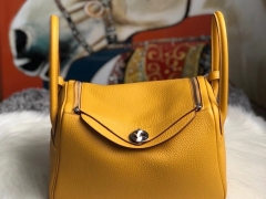 Hermès(爱马仕)Lindy 26cm 原厂御用大牛皮 9D 琥珀黄 Amber 银扣 顶级手缝 现货
