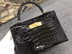 Hermès(爱马仕)Mini kelly ll alligator shiny 亮面鳄鱼 ck89 黑色 Noir 金扣 顶级手缝