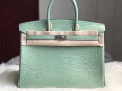 Hermès(爱马仕)Birkin 35cm Crocodile matt 雾面鳄鱼6U 薄荷绿 银扣 顶级手缝