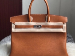 Hermès(爱马仕)Birkin 铂金包 马鞍皮 金棕色 gold 银扣 35cm