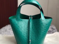 Hermès(爱马仕)Picotin 22cm Ostrich kk鸵鸟 U4 丝绒绿 银扣 顶级手缝 定制