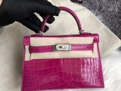 Hermès(爱马仕)Mini pochette 22cm Alligator shiny 亮面鳄鱼 J5 天方夜谭粉紫 银扣 顶级手缝 现货