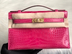 Hermès(爱马仕)Mini kelly pochette 22cm 亮面鳄鱼 5J 桃粉 金扣 顶级手缝 手拿包 晚宴包