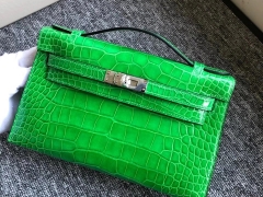 Hermès(爱马仕)Mini pochette 22cm Alligator shiny 亮面鳄鱼 1T仙人掌绿 银扣 顶级手缝 现货