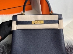 Hermès(爱马仕)Kelly 28cm 原厂小牛皮 togo 2Z 午夜蓝 Blue nuit 金扣 顶级手缝 现货