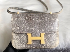 Hermès(爱马仕)Constance 18cm Lizard 进口亮面蜥蜴 01 原色 小喜马拉雅色 金扣 超美