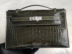 Hermès(爱马仕)Mini kelly pochette 22cm 亮面鳄鱼 6H 橄榄绿 银扣 顶级手缝 手拿包 晚宴包