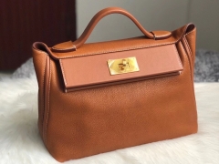 Hermès(爱马仕)2424 颗粒马鞍皮 金棕色 金扣 顶级手缝 定制