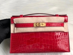 Hermès(爱马仕)Mini kelly pochette 22cm 亮面鳄鱼 ck95 法拉利红 Braise 金扣 顶级手缝 手拿包 晚宴包