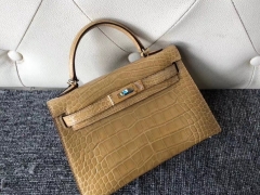 Hermès(爱马仕)Mini kelly pochette 22cm Alligator shiny 亮面鳄鱼6H 橄榄绿 银扣 现货